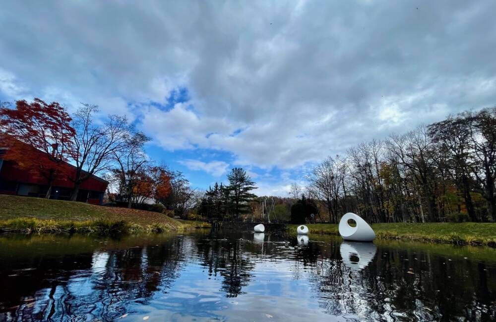 札幌芸術の森・野外美術館の玄関口に浮かぶ3つの白いキューブ。